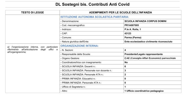 Dati riguardanti la nostra scuola dell’infanzia per l’a.s. 2020-2021 in adempimento al DL 25 maggio 2021, n. 73